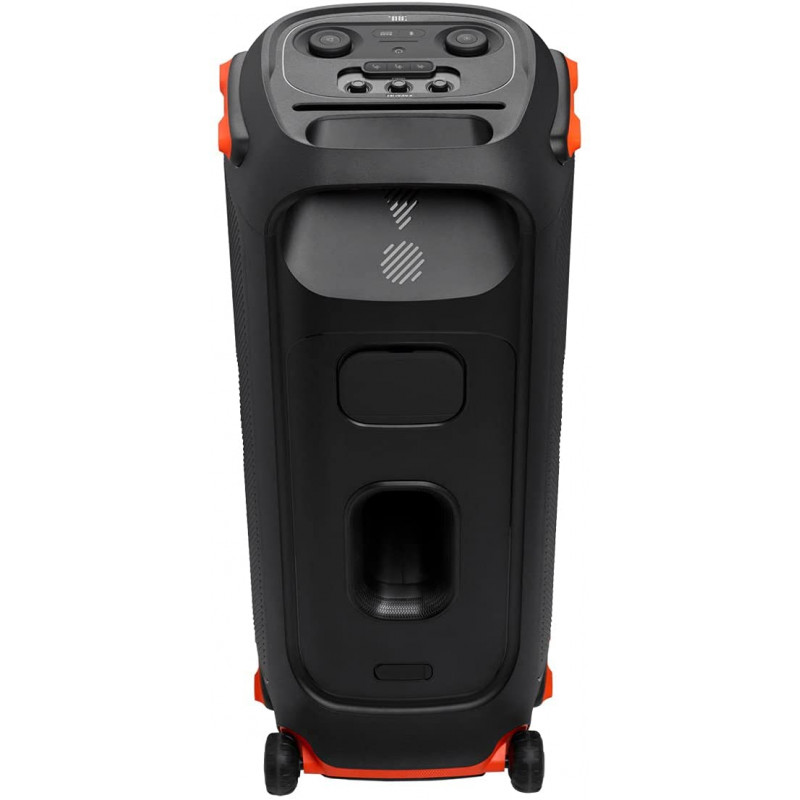 Enceinte portable Bluetooth de soirée avec effets lumineux – Son JBL Original Pro – Puissance : 800 Watts RMS – 2 woofers 203 mm + 2 tweeters 69.8 mm – Port Bass Reflex – Technologie Bluetooth 5.1 – Jeux de lumière synchronisés au rythme de la musique et de nombreux modes disponibles – Port USB : lecture de fichiers MP3 / WMA / WAV ou charge pour appareils mobiles – Connecteurs : RCA, AUX, entrée micro, entrée combo micro/guitare – Conception IPX4 : résistance aux éclaboussures – Connectez deux enceintes PartyBox via le mode TWS (ou via câble RCA) – Poignée de transport, roulettes robustes – Application mobile PartyBox – Dimensions 399 x 905 x 436 mm- Poids 30Kg – Garantie 1 an