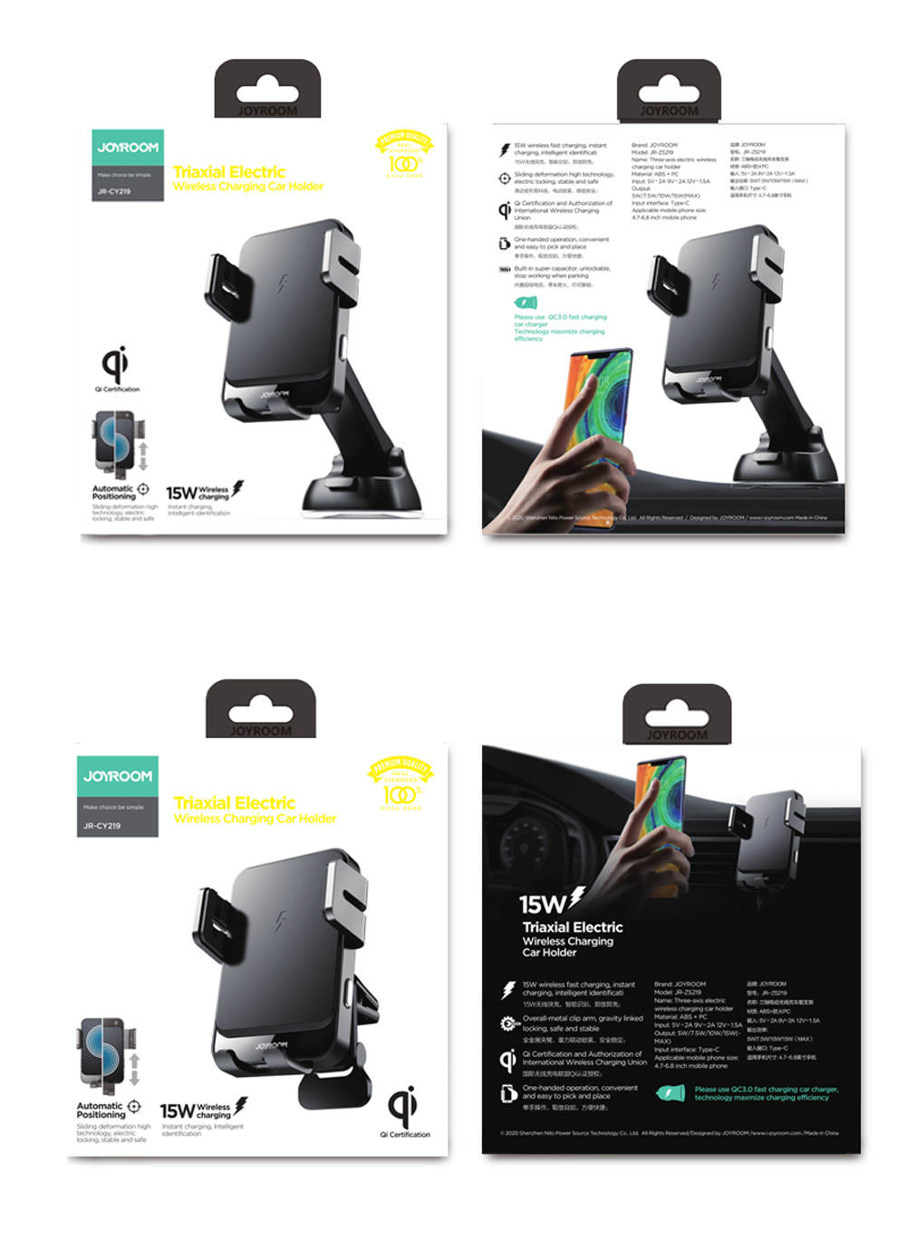 JOYROOM JR-ZS219 Electric 15W Qi Support de voiture pour tableau de bord de char