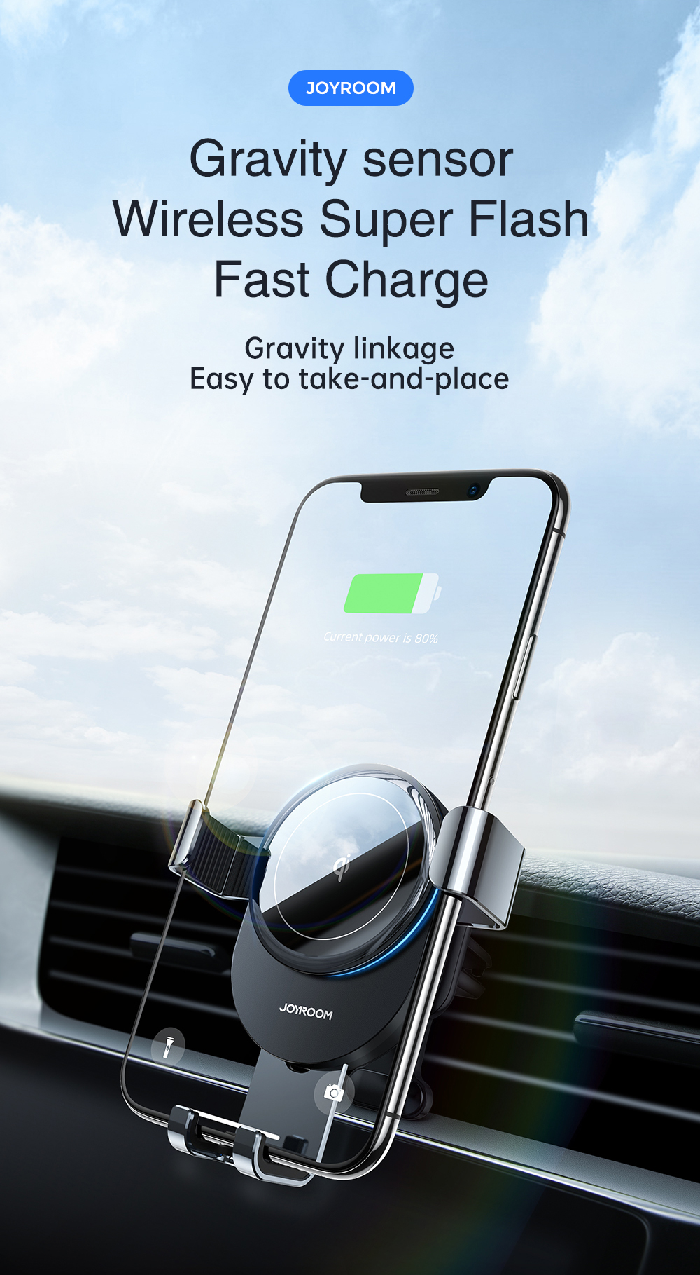 JOYROOM SUPPORT DE VOITURE À GRAVITÉ DE CHARGE SANS FILJR-ZS212